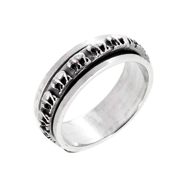 Treasure Bay MENS WOMENS 7.5mm Solid 925 Sterling Silver Ring, Finger Ring, Elephant Design Spinning Stress Relief Ring (R)
