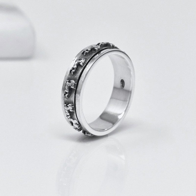 Treasure Bay WOMENS MENS 6.5MM Band Skulls, Celtic Knot, Braid 925 Sterling Silver Spinner/Spinning/Spin Ring Stress Relief Ring Size L M N P R T W Y (Horses, T)