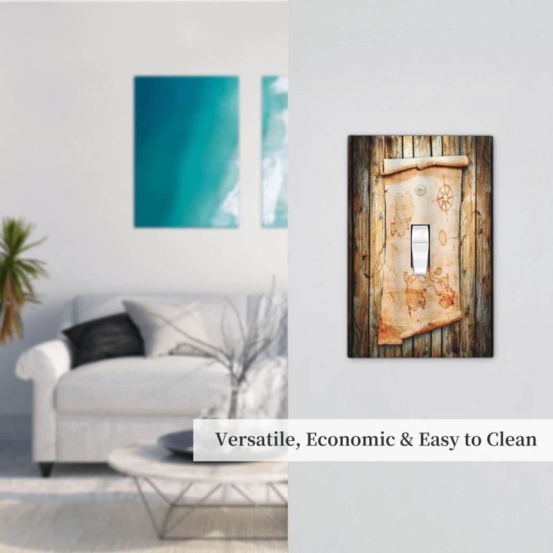Treasure Map Switch Plate 1 Gang Light Switch WallPlate Cover Single Toggle Plate Decorative Standard Size 5 x 3 In Switchplate Electrical Faceplate Ruined Old Parchment Bath Bedroom Kitchen Decor