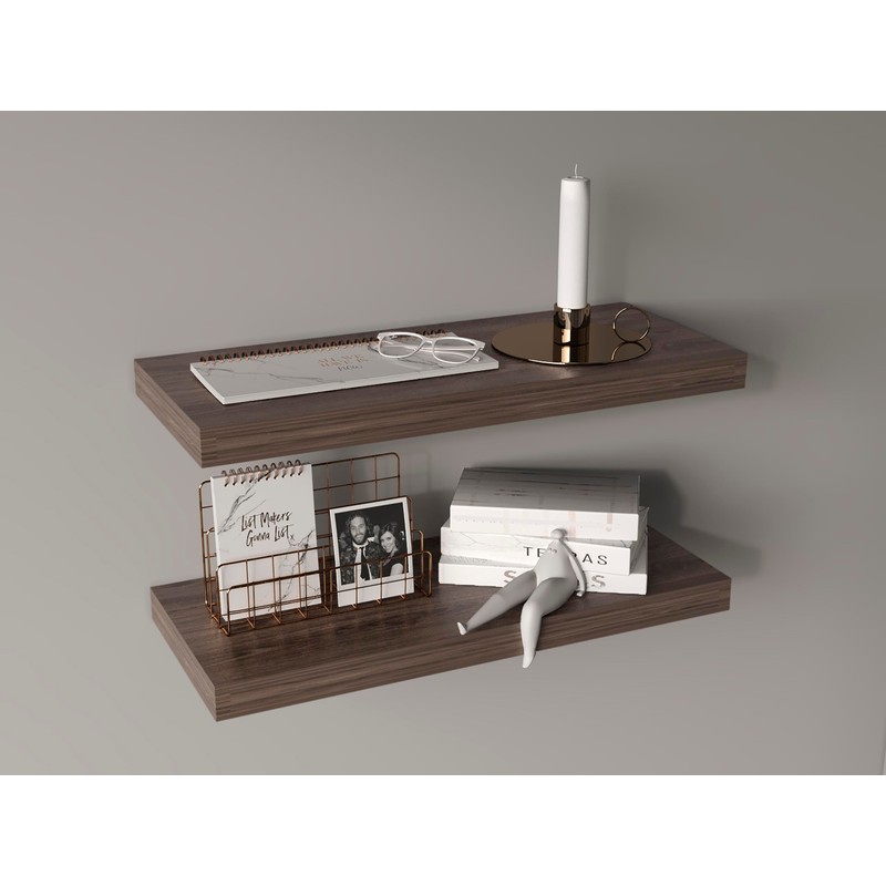 TREATLIFE HOME Stylish Walnut Floating Shelves - Set of 2, Organizing Decor and Essentials, Compact Design, 31.50" W