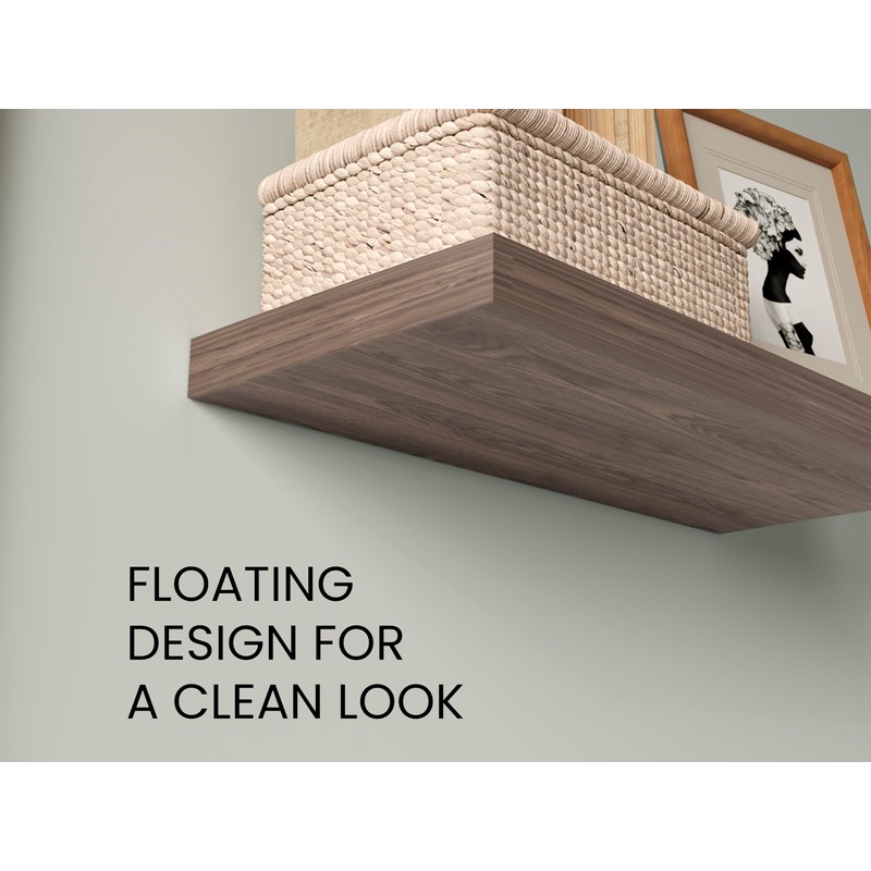 - Floating design creates an open look, keeping your space -free while showcasing your favorite items beautifully.
