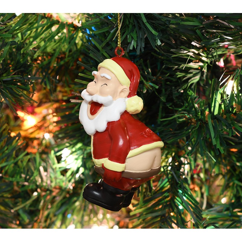 • Santa's showing off his butt in this hilarious mooning Santa xmas ornament.
