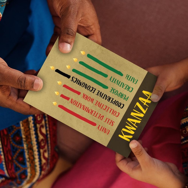 Tree-Free Greetings Kwanzaa Greeting Card,Eco Friendly,Made in USA,100% Recycled Paper,5"x7",Seven Candles on Tan (GO63102)