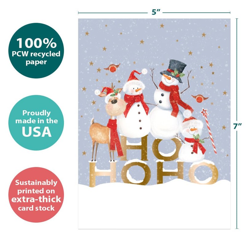 • Inside Greeting: Ho Ho Hope your holiday is filled with snowy fun, and warm memories. Merry Christmas! | Cover Greeting: Ho Ho Ho