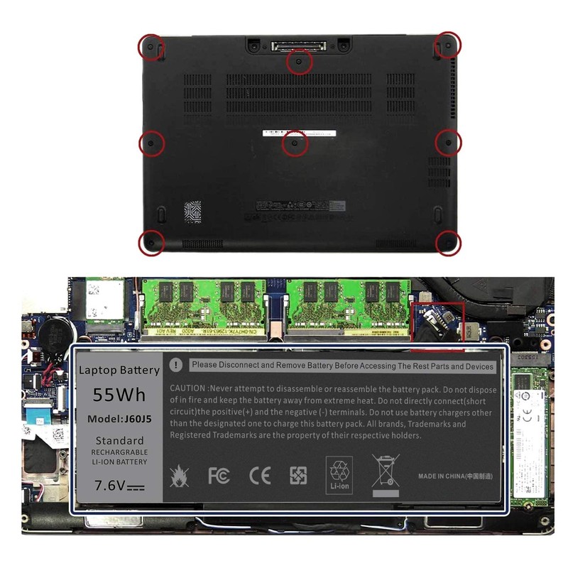 - Compatible With: Dell Latitude E7270 E7470 55 Wh 7.6V Battery GG4FM 0GG4FM J60J5 laptop, notebook primary battery replacement. DELL J60J5 7.6V 55Wh 4-Cell Notebook Battery for DELL Latitude E7270 Latitude E7470 Laptop P/N: J60J5 R1V85 WYWJ2 5F08V MC34Y 242WD 451-BBSY 451-BBSX 451-BBSU