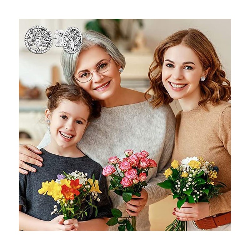 Tree of Life Earrings 925 Silver Women's with 3A Cubic Zirconia Earrings Silver 925 Hoop Earrings Silver 925 Stud Earrings for Birthday Mother's Day Christmas Thanksgiving Day, Silver