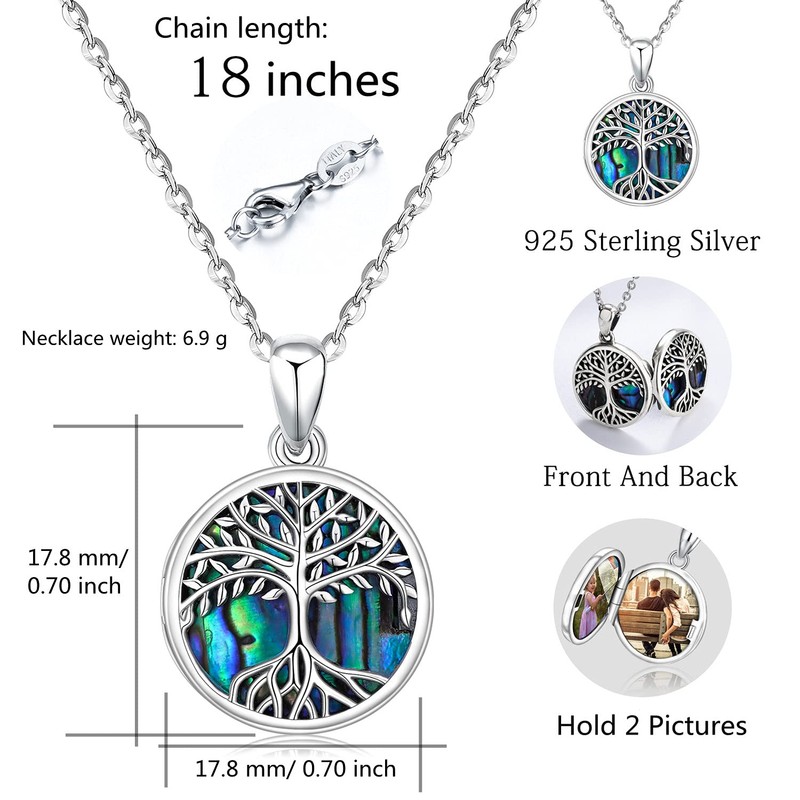 - TREE OF LIFE LOCKET PENDANT NECKLACE - The classic tree of life locket necklace is a carefully crafted round pendant that is used to store precious pictures of memories and make them close to your heart. This Family Tree Jewelry contains 2 internal photo windows, where 2 photos can be placed. The tree of life necklace is a symbol of healing, love, growth and health. With colorful abalone shells as the background, it is mysterious, elegant and charming.