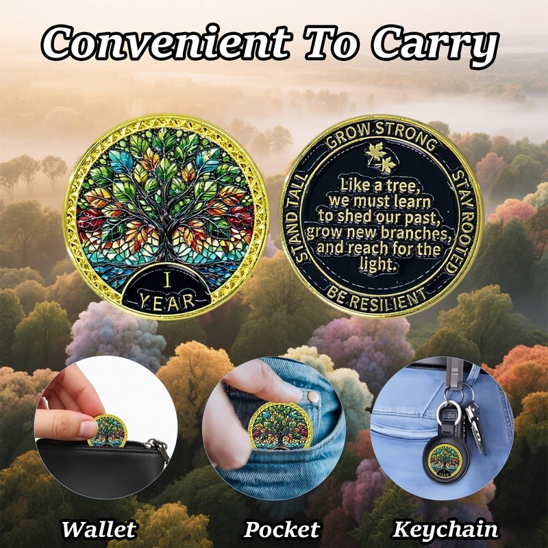 - Premium Material & Design: Our tree of life sobriety coin are crafted from iron alloy. At the same time Our coin is designed for sensory satisfaction. The intricate 3D design adds depth and texture to the coin.