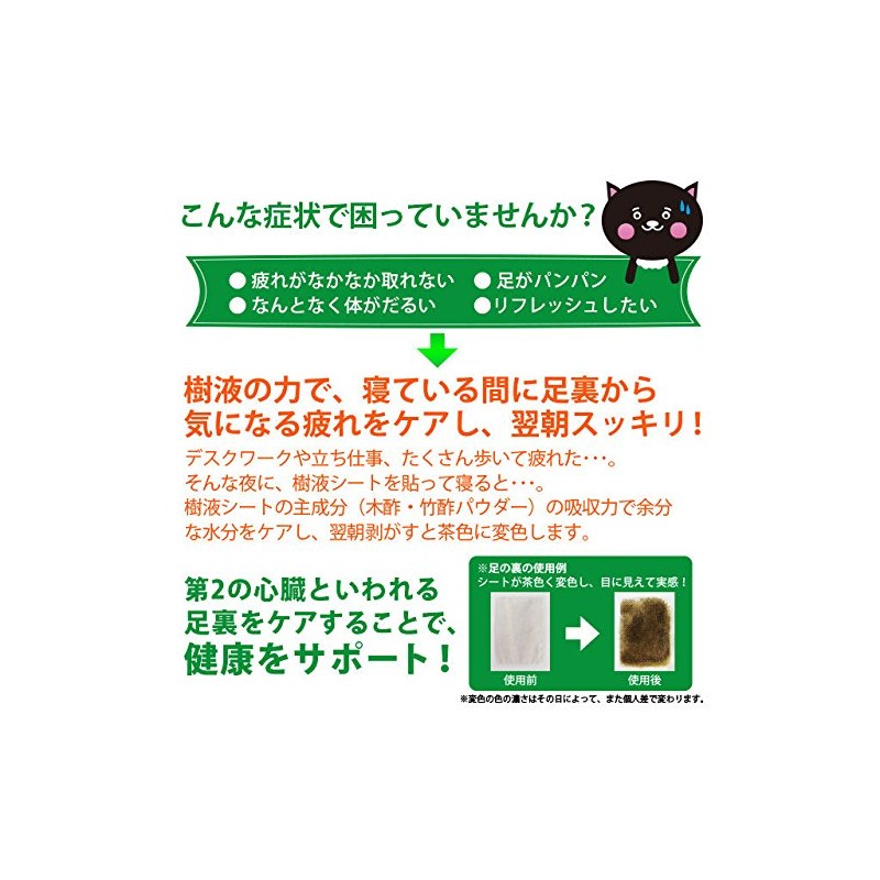 The main ingredient of the sole sheet (wood vinegar liquid and bamboo vinegar liquid powder) is absorbed to care for the excess water, and it will turn into brown thread after peeling it off the next morning.