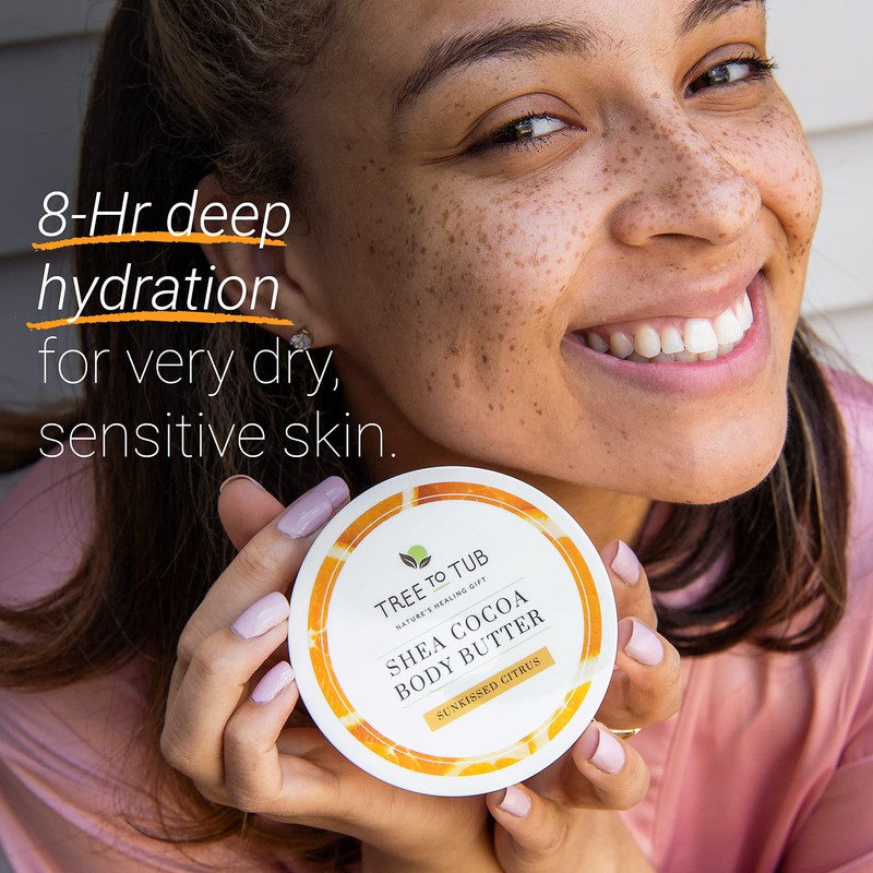 Tree to Tub Tree to Tub Shea Body Butter for Dry, Extremely Dry, Sensitive Skin - Moisturizing Body Cream for Women & Men, Hydrating Body Lotion Moisturizer w/Vitamin C, Organic Cocoa, Citrus Scent