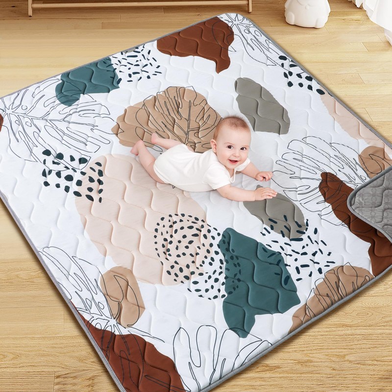 - Versatile Large Play Area - With generous 59"x71" dimensions, this spacious activity mat perfectly accommodates standard playards while serving multiple functions as a nursery floor mat, toddler play space, kids' teepee tents padded mat, or cozy surface for reading and playtime. The ideal size provides ample room for babies to move freely during crucial developmental stages.