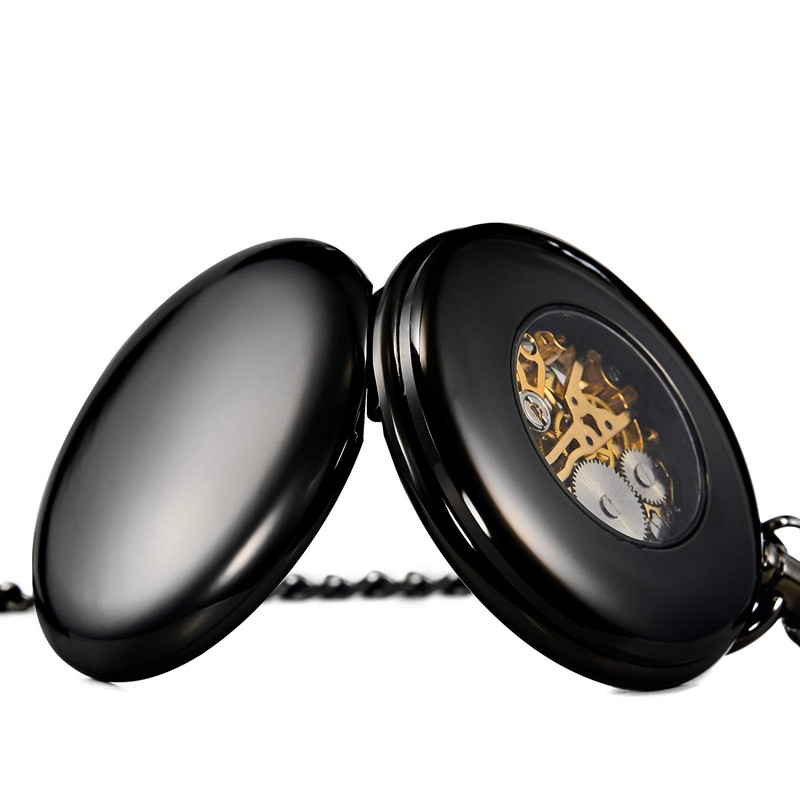 TREEWETO Pocket Watch Smooth Case Skeleton Dial Mechanical Movement with Chain
