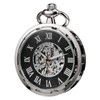 TREEWETO Pocket Watch with Chain Men's Analogue Mechanical Hand Winding Open Face Skeleton Movement, Black, Classic