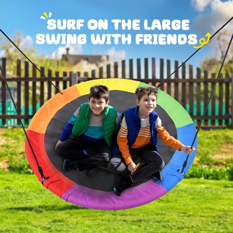 Trekassy 60" Large Saucer Tree Swing for Kids Adults 900D Oxford Waterproof with 2pcs Hanging Straps-Rainbow