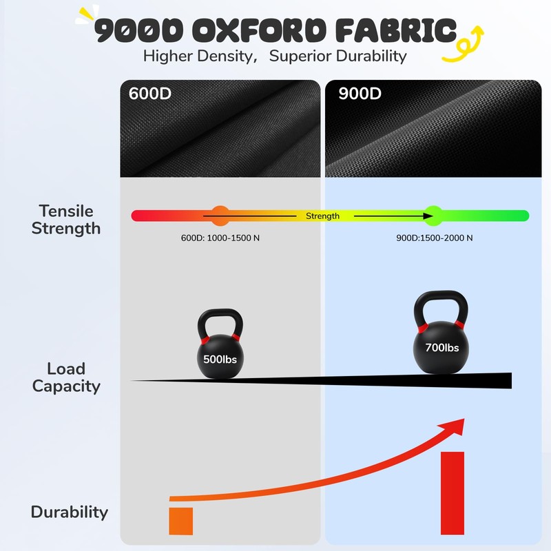 - High quality rustproof steel frame and 900D Oxford fabric materials are used on each swing seat, weather-resistant, more stronger and safer.