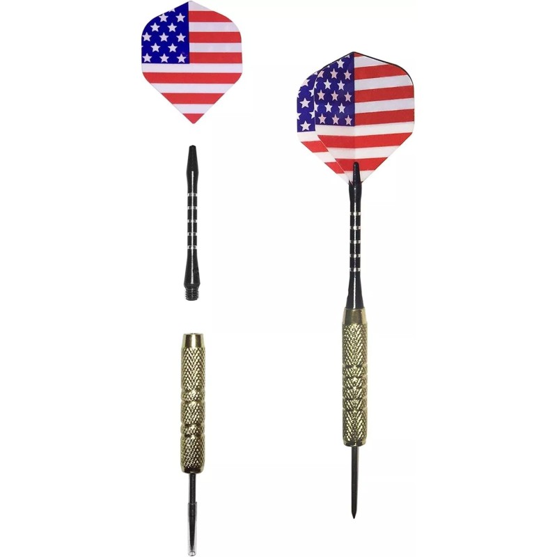 - REPRESENT YOUR COUNTRY: Each steel tip dart features 1 of 4 country flags for up to four players per dartboard, including USA, Canada, Germany and England.