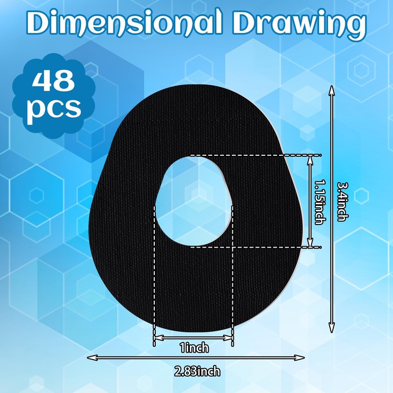 - 48 Piezas de repuesto: recibirás 48 piezas de parches de monitor de glucosa CGM en negro; La cantidad suficiente y el bonito color cubren tus necesidades de reemplazo diario y combinación con atuendos; Nuestros parches se pueden aplicar durante mucho tiempo, pero se recomienda a las personas con piel frágil que los reemplacen con frecuencia para evitar daños a la piel