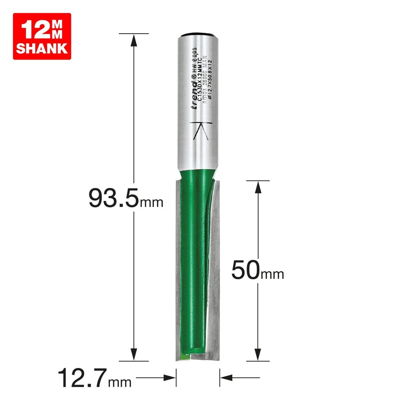 Trend CraftPro C153DX12MMTC Double Flute Spiral Groove Router Bit 12mm Shank 12.7mm Cutting Diameter & 50mm Cutting Length Carbide Tipped
