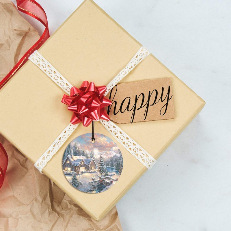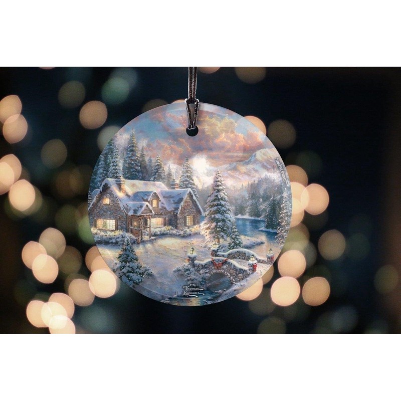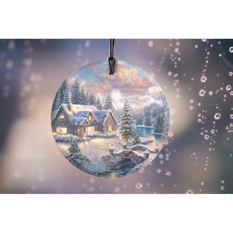 Trend Setters Thomas Kinkade - High Country Christmas - 3.5” Starfire Prints Hanging Glass Print Accessory - Ideal Decoration for Gifting and Collecting
