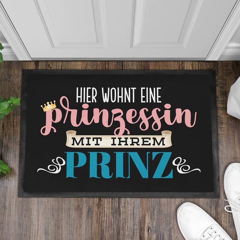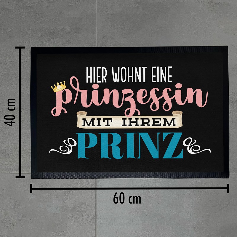 Trendation - Hier Wohnt Eine Prinzessin mit Ihrem Prinz Doormat Gift Funny Saying 60 x 40 cm