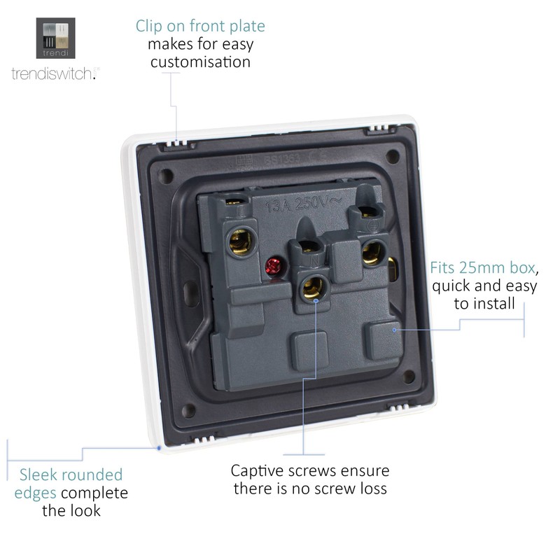 - A CHARCOAL 1 GANG PLUG SOCKET MADE FROM HIGH QUALITY FIREPROOF ABS PLASTIC: From Trendiswitch, screwless plate with a sleek and modern appearance – making decorating a breeze.