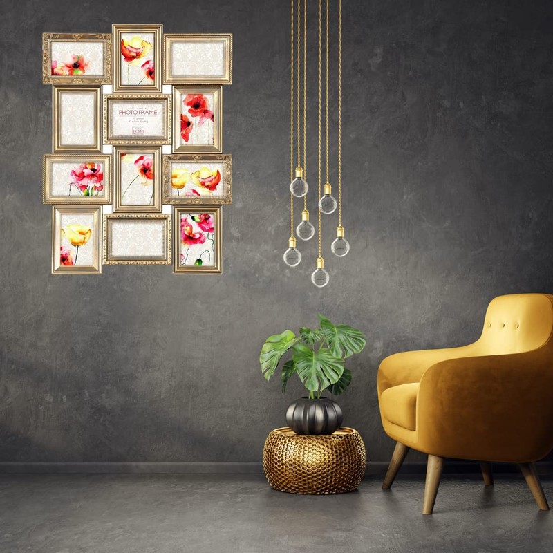 Trendi® Large Multi Aperture Photo Frame for 12 6 x 4 Photos Black/White/Grey/Golden (Gold Photo)