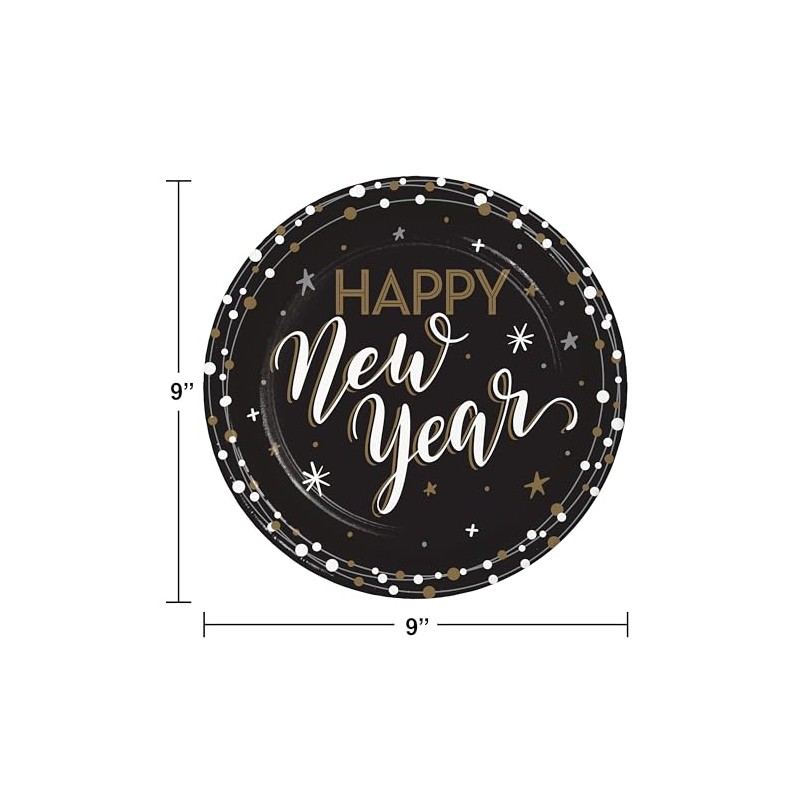 Trendware New Year's Shimmer Happy New Year Dinner Paper Plates, 24 Count, Decorative 9" Heavy Duty Dinner Plates for Christmas and Winter Holidays