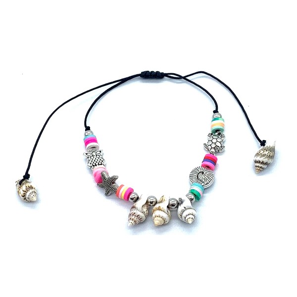 trendy Beach Anklet Bracelet Real Seashell Medal Turtle Starfish Adjustable Black Cord