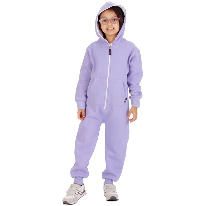 Trendy Toggs zip Up Onesie. This comfortable kids' onesie has a lovely brushed fleece finish inside, making it feel cozier on the skin. Enjoy having the kangaroo pockets to put your everyday essentials in. For a great relaxed fit, this onesie has ribbed cuff sleeves and ribbed cuff ankles and for some extra coverage, there is a hood. Very versatile, can be worn indoors or outdoors. Please note our size range has taken growing space into account. Picture 1 Model is age 10 and wears 11-12 years and picture 2,3 and 4 Model is age 8 and wear 9-10 years. Cotton 80%, 20% Polyester.