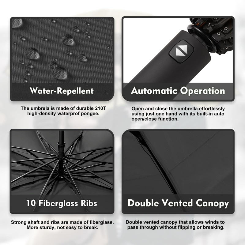 - AUTO OPEN & CLOSE - We built our Trenovo travel umbrella with an automatic operation system, opening and closing with just the touch of a button. No more dealing with the hassle of manual folding umbrellas, easily open to make getting out cars and buildings a breeze. The inside out umbrella is easy to use for one hand, auto-close function can help you save more time.
