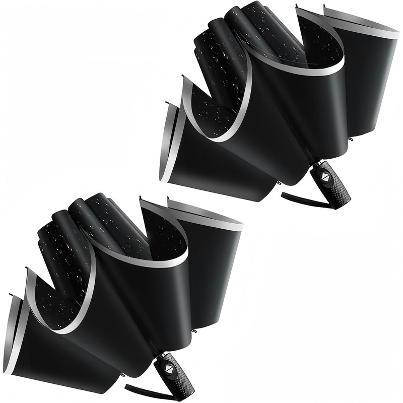 Trenovo 2 Pack Windproof Trave Inverted Umbrella, Reverse Compact Umbrellas for Rain, Portable Large Folding Sun UV Automatic Upside Down Umbrella for Car Backpack (Black + Black)