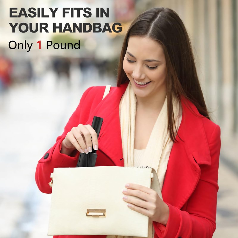 - COMPACT & PORTABLE - Compared to other compact umbrella on the market, this is an upgraded reverse umbrella, lighter weight(only 1.2 lbs)and more easy carrying.If you are looking for a travel umbrella that can easy to be carried or stored in your car, briefcases, backpacks, tavel bags etc, our fully automatic folding umbrella is undoubtedly your best choice owing to it only folds down to 12.6 inches. We designed our rain umbrella with a large 46 inch canopy, keeping you protected on all sides.
