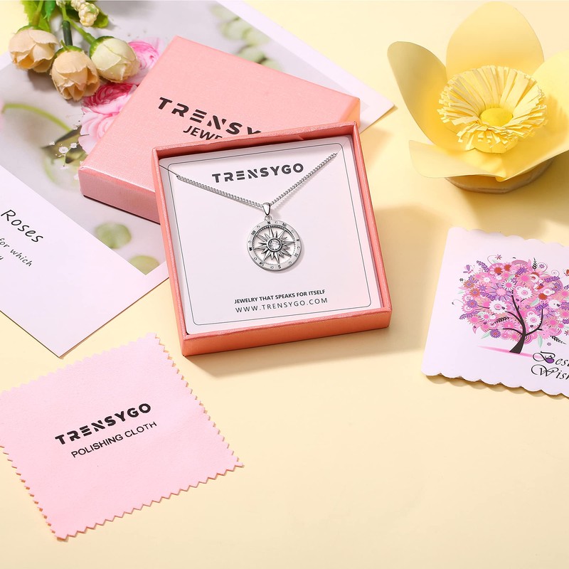 TRENSYGO Id Be Lost Without You White Gold 925 Sterling Silver Nautical Star Compass Charm Pendant Necklace for Women Men Friendship Best Friend Daughter Jewelry Graduation Mother Day Christmas Gifts