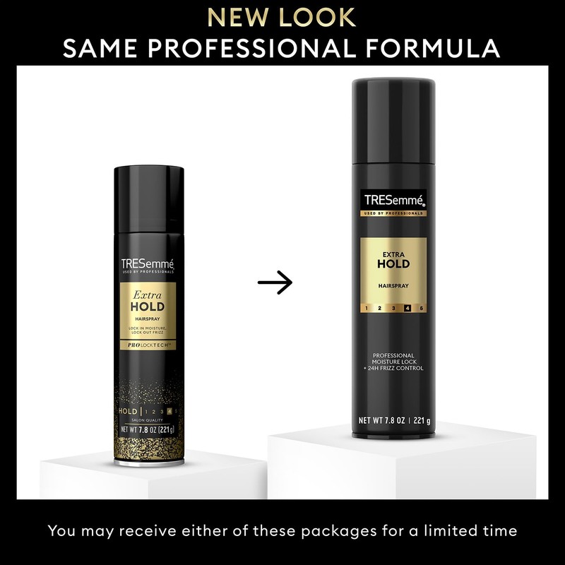 • TRESEMME HAIRSPRAY + MOUSSE: TRESemmé Extra Hold Hairspray (7.8 oz) and Mousse (6.5 oz) lock in lasting moisture with Pro Lock Tech without any stiffness, stickiness, or crunch.