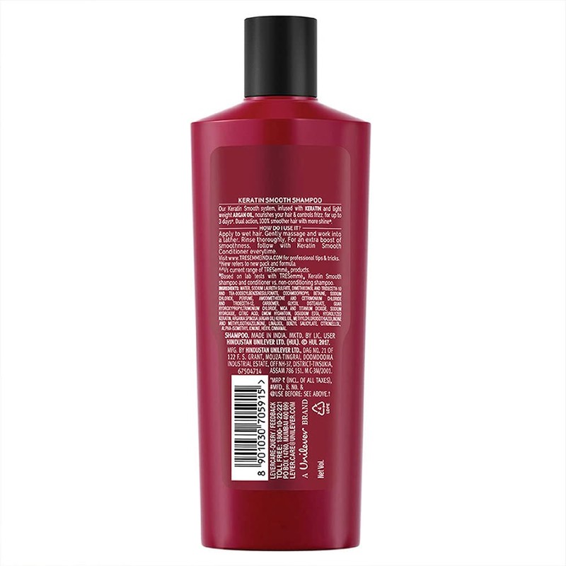 TRESemmé Keratin Smooth help you to achieve runway standard smooth hair everyday with Argan Oil & Keratin, you can enjoy 5 benefits in just 1 wash: anti frizz, detangles, shine, smooth, tames fly aways.