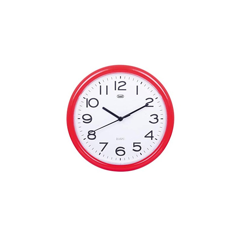 Trevi OM3301 - Completely silent 25.5cm diameter quartz round wall clock with sweep movement - Red
