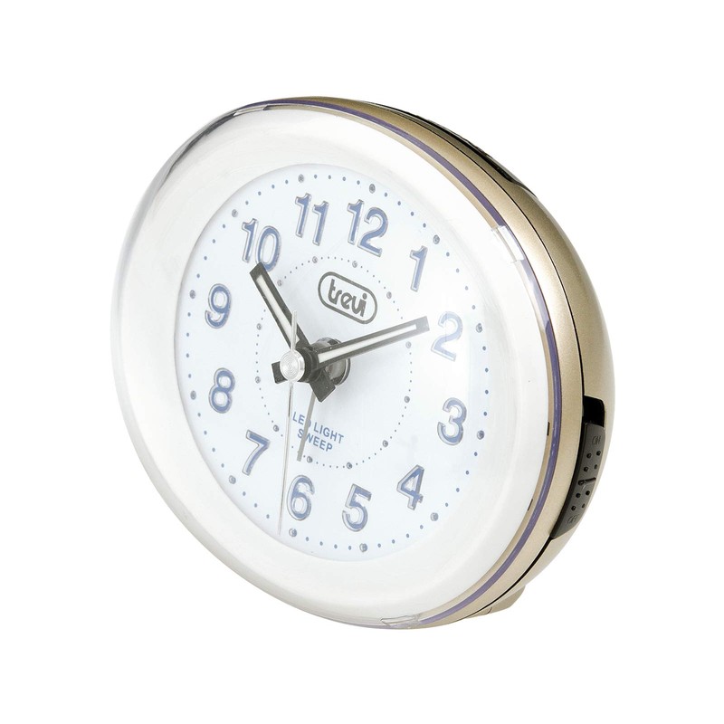 Trevi SL3052 - Compact Bedside Quartz Alarm Clock with LED Backlight - Silent Operation - Quiet no Ticking - Gold