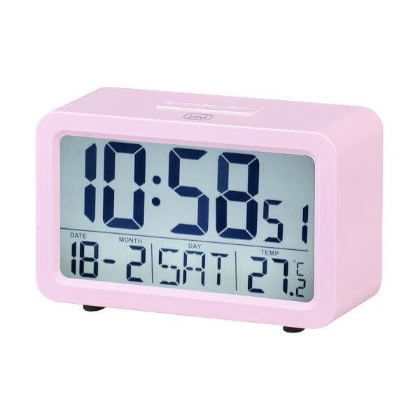 Trevi SLD 3P60 Digital Clock with Large Display with Backlight and Thermometer, Programmable Alarm Clock, Snooze and Timer Function, Pink