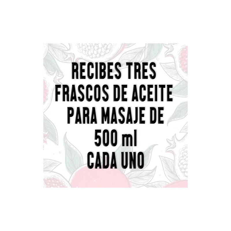 Descripción Limpia: RECIBE TRES FRASCOS DE 500 ML CADA UNO DE ACEITES PARA MASAJE