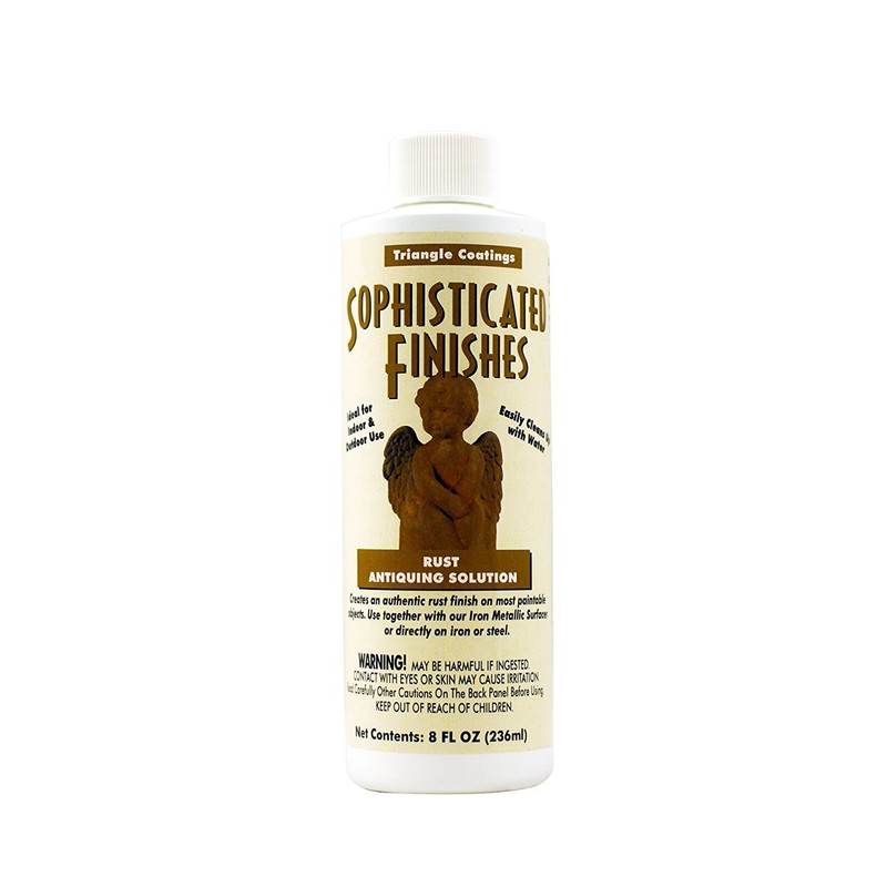 Use with metallic surfacers to achieve your desired antique finish on any paintable surface. Instant rust works with the Instant Iron surfacer. Burgundy tint and black tint work with any of the other surfacers (blonde bronze, blackened bronze, copper, and gold). These antiquing solutions can also be used directly on metal surfaces to create desired effects.Modern Options Antiquing Solutions come in 4 oz. and 8 oz. bottles.
