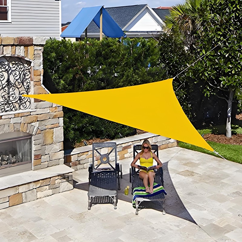 - MATERIAL - The sun shade sail is made of 100% High-Density 185GSM Polyethylene fabric, with strongly stitched seams and durable stainless steel D-rings. The fabric is breathable and 98% UV block, allowing air and light to pass through for a more comfortable space.
