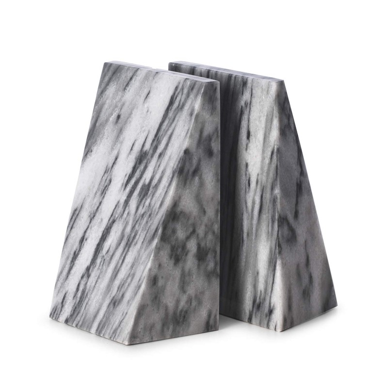 Triangular Natural Genuine Marble Bookends with Wedge Design (Grey)