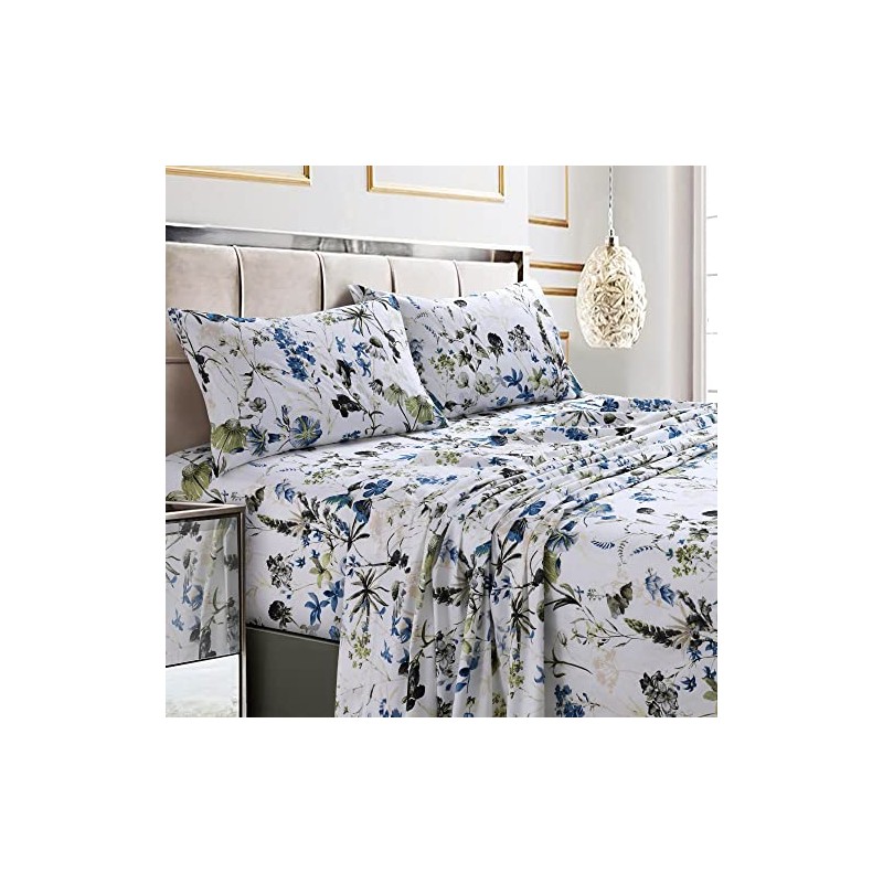 - 100% Lustrous Cotton Sateen: Made from 300-thread count cotton sateen, these sheets offer a silky-smooth feel with a luminous finish. The floral print design adds a touch of elegance to any bedroom décor, making these sheets perfect for year-round use.