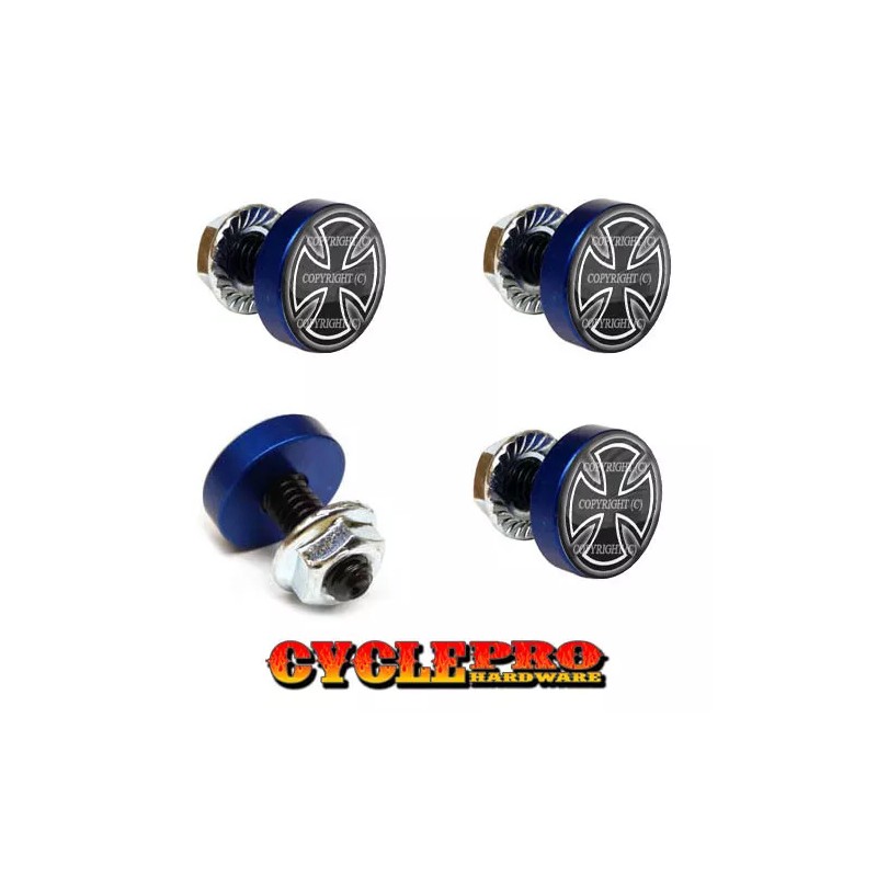 TrickToppers Custom Parts 4 Vivid Blue Billet License Plate Frame Tag Bolts - IRON CROSS - 018