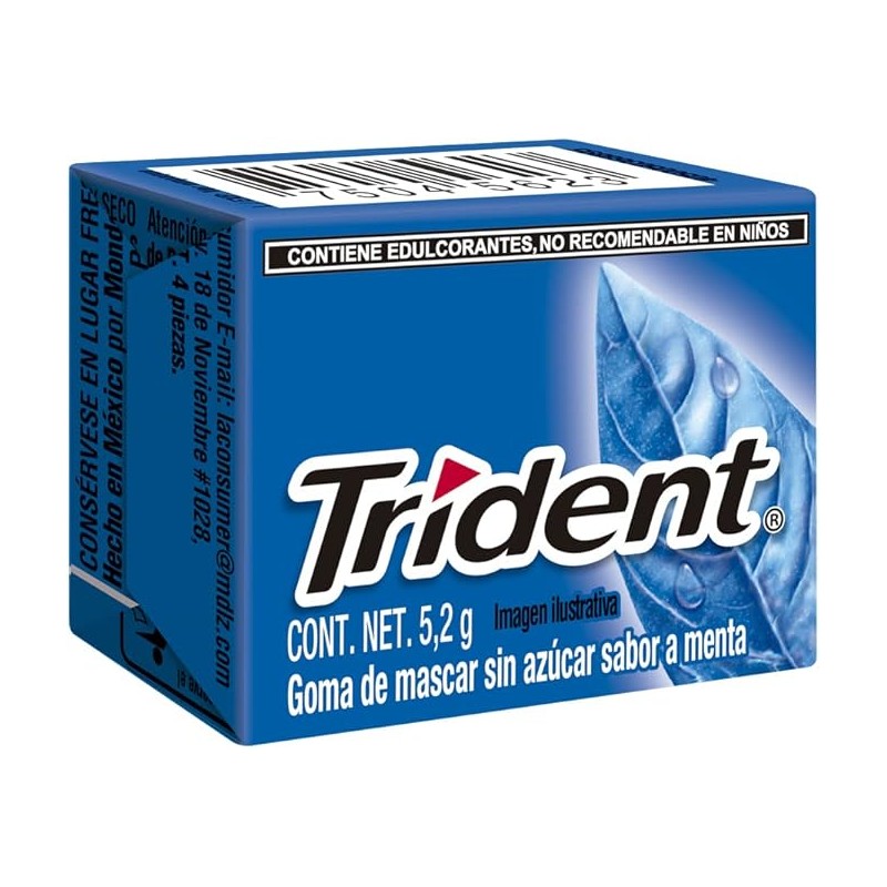 Trident chicle confitado es la goma favorita de los adolecentes ya que no contiene azúcar. Trabajamos intensamente en la disposición de los productos, implementando las habilidades adquiridas durante las experiencias. Nos fijamos estándares de calidad extremadamente altos y un gran espíritu de iniciativa en la investigación y el desarrollo de materias primas y proveedores.