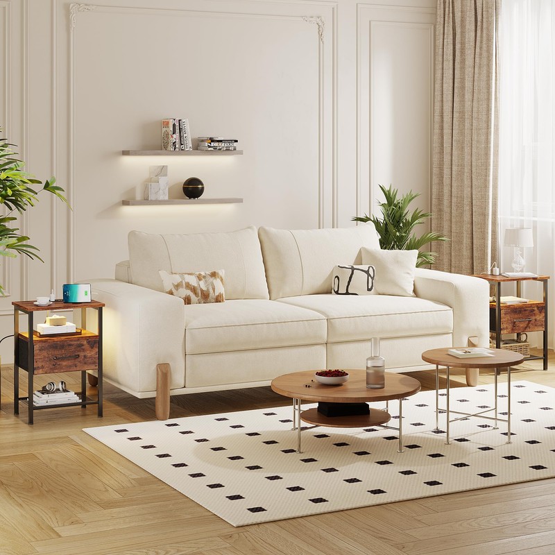 - Solid StructureMade with high quality particleboard, robust steel frame, durable fabric drawers, and 4 adjustable feets, this small side tables will serve you for many years.