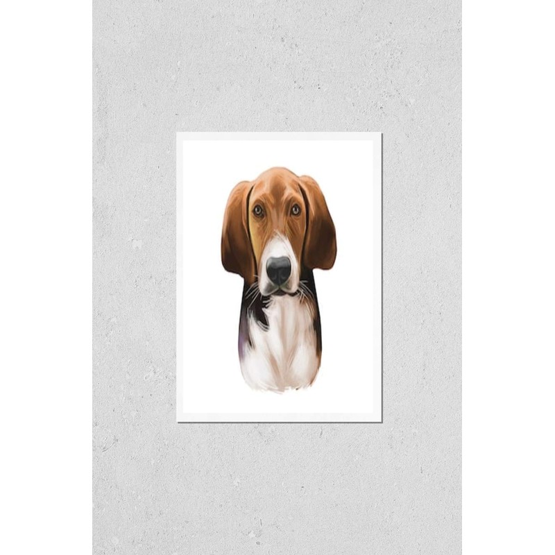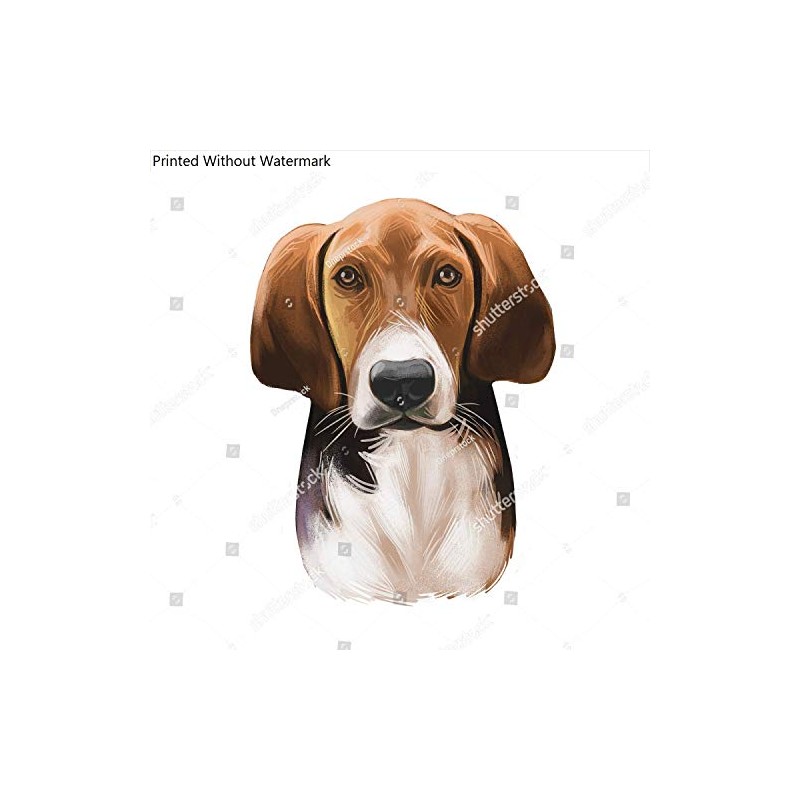 Trigg Hound Puppy isolated digital art illustration. Hand drawn dog muzzle portrait, puppy cute pet. Dog breeds originating from United States. American English Foxhound, bred to hunt foxes by scent