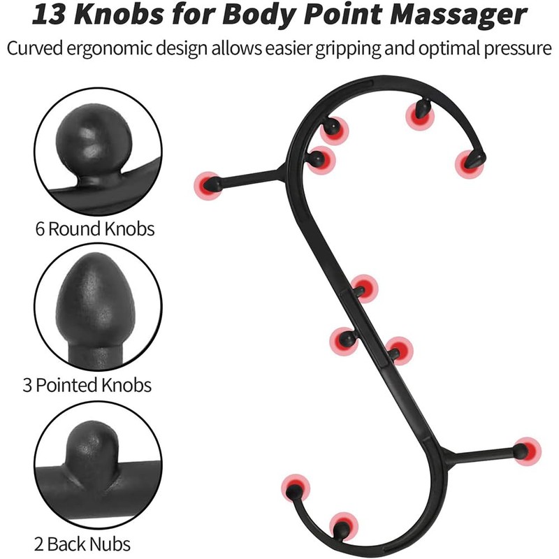 Trigger Point Massage Tool, Curved Massager Roller Stick, Back Massagers for Neck Waist, Thigh, Stomach (Black)