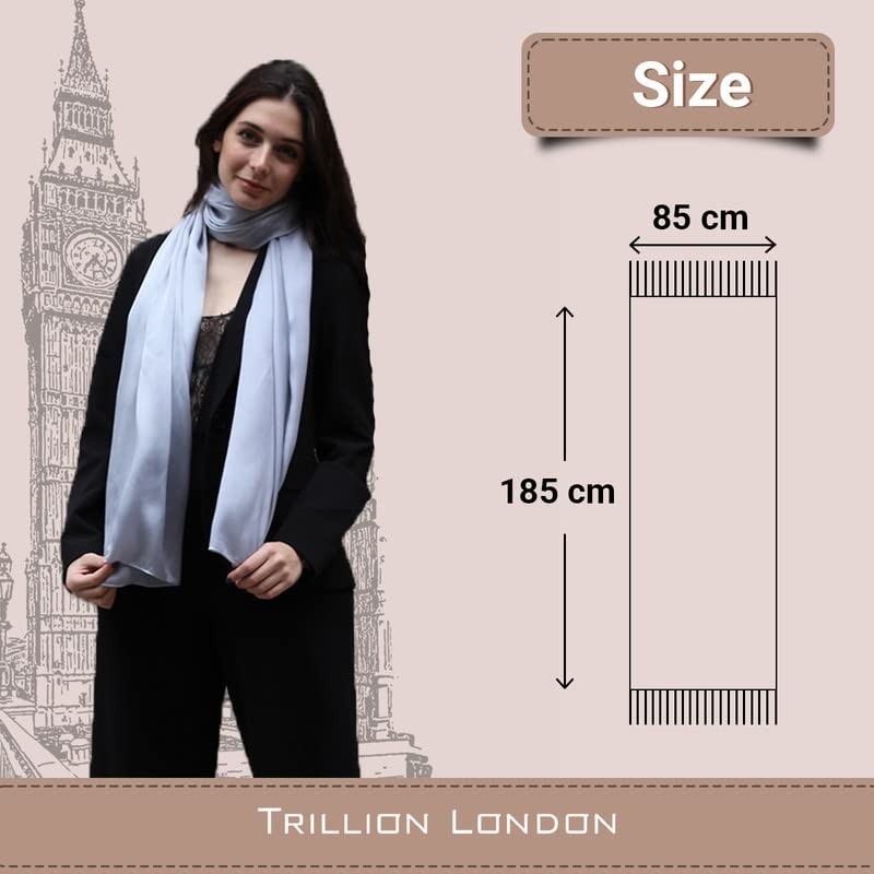 Trillion London® Spring Collection | Silver Plain Scarves | Silk Neck Scarf For Women's | Ladies Lightweight Scarves | Suitable for Daily Life & Gifting | Shawl Wraps |Size - 185 cm * 85 cm