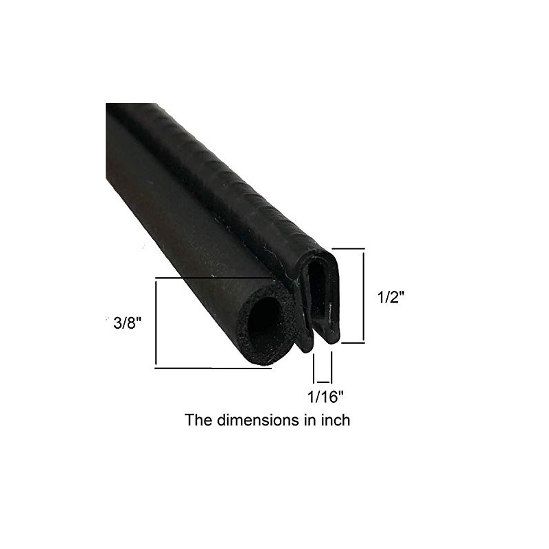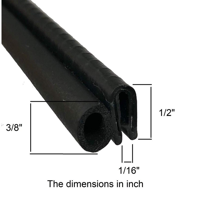 Trim Seal with Side Bulb | PVC Plastic Trim with EPDM Rubber Bulb Seal – Fits 1/16” Edge, 3/8” Bulb Seal Diameter WEATHER-RESISTANT rubber bulb seal, PVC vinyl gripping tongue and aluminum clip provides excellent protection against heat, extreme weather damage and corrosion. FLEXIBLE PVC TRIM with internal aluminum metal clips and gripping tongue – providing strong grip and excellent grip retention. DURABLE EPDM FOAM RUBBER drowns out noise, eliminates vibration, and protects your vehicle, RV, boat, or home from outside elements. EASY TO INSTALL push-on trim seal allows for a fast installation and creates a finished edge seal that is durable and protects against the elements. WIDE RANGE OF APPLICATIONS including RV compartment seals, boat hatch seals, door seals, automotive door seals, storage container seals, tool box seals and decorative trim seals. Specifications: Material: Rubber, PVC, Metal. Dimensions: Dimesions in inch: Bulb Seal Diameter: 3/8" Fits thickness: 1/16" Dimesions in millimeters: Bulb Seal Diameter: 9.5 mm Fits thickness: 1.5 mm